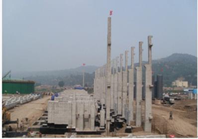 根據(jù)設(shè)計要求,焦爐氣壓縮機廠房所有水泥立柱均采用混泥土一次性預(yù)制,最后整體吊裝。每根水泥柱長約19米,重達26噸,因其水泥柱上部有不規(guī)則的牛腿,增加了吊裝難度。項目部精心組織,主導施工隊、吊裝公司、業(yè)主連同監(jiān)理各方積極協(xié)調(diào)聯(lián)系,制訂了嚴密的吊裝計劃,采用160噸吊車進行主吊裝,50噸吊車同時遛尾,并配備了經(jīng)驗豐富的吊裝總指揮,施工總工親自在現(xiàn)場進行技術(shù)支持。