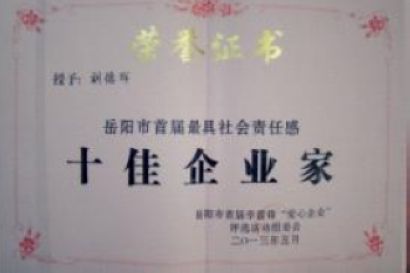 公司榮獲岳陽(yáng)市首屆學(xué)雷鋒“愛心100”企業(yè)榮譽(yù)稱號(hào)