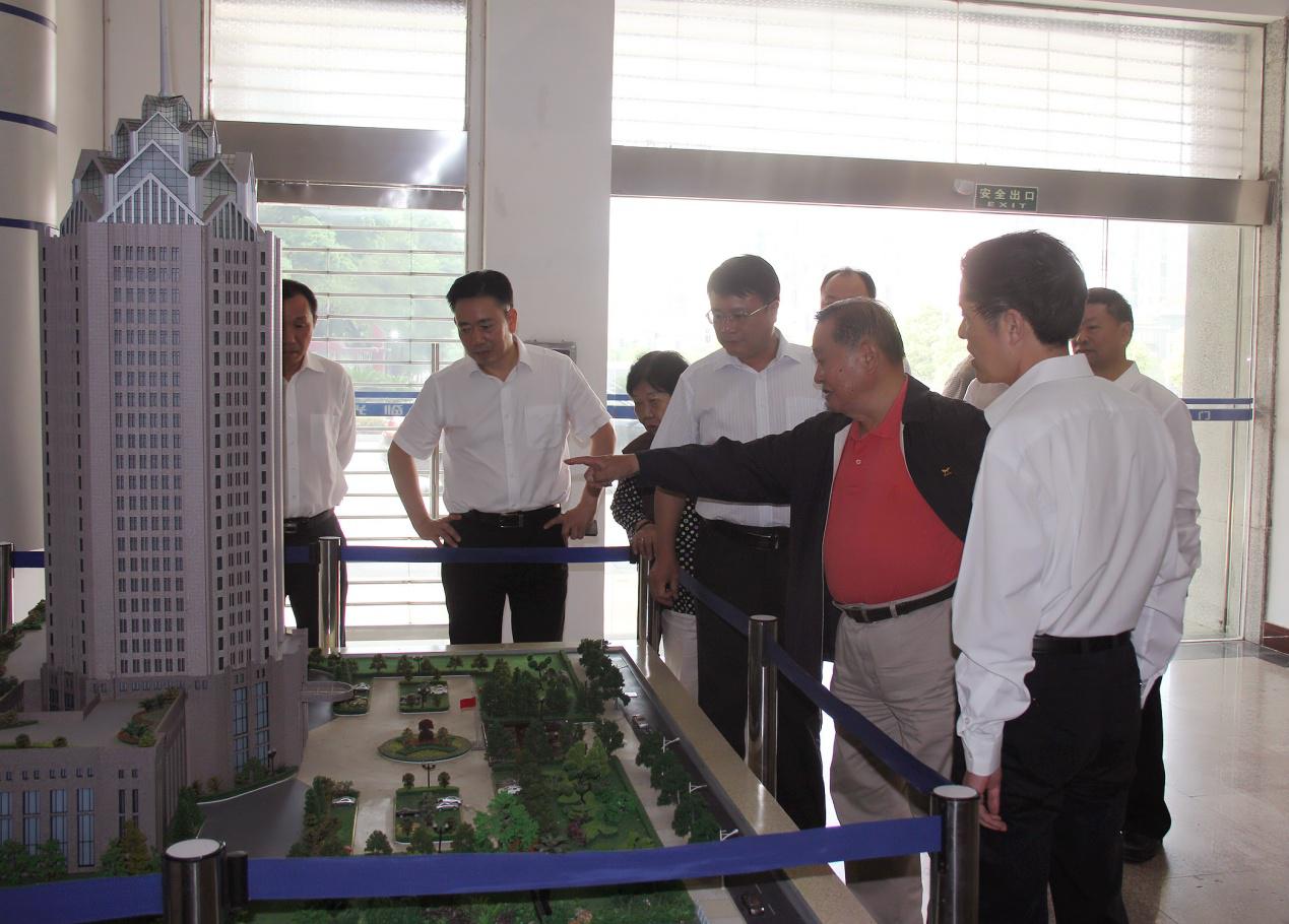 上午9時,陳邦柱攜夫人唐淑芬興致勃勃地來到了公司。一走進(jìn)辦公大樓,看到“中國化學(xué)四化大廈”的模型,在聽取公司董事長、黨委書記劉德輝的介紹后,他指著新辦公樓模型連聲稱贊。