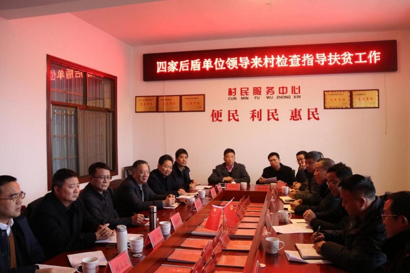 在達摩嶺村,四化建公司、岳陽市人民檢察院、建設銀行岳陽分行、汨羅市人民檢察院等四家后盾單位主要領導聽取了駐村第一書記吳玉堂關于2019年達摩嶺村扶貧集中攻堅工作的匯報,并在村支兩委班子成員和駐村工作隊隊員的陪同下察看了由四家后盾單位捐資修繕的村級公路。