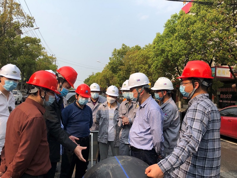周鴻一行首先在廠區(qū)進(jìn)行了檢查,詳細(xì)了解目前施工進(jìn)展、防疫防控和現(xiàn)場(chǎng)各項(xiàng)安全生產(chǎn)措施落實(shí)情況,隨后到各路段現(xiàn)場(chǎng)檢查了管網(wǎng)施工情況。