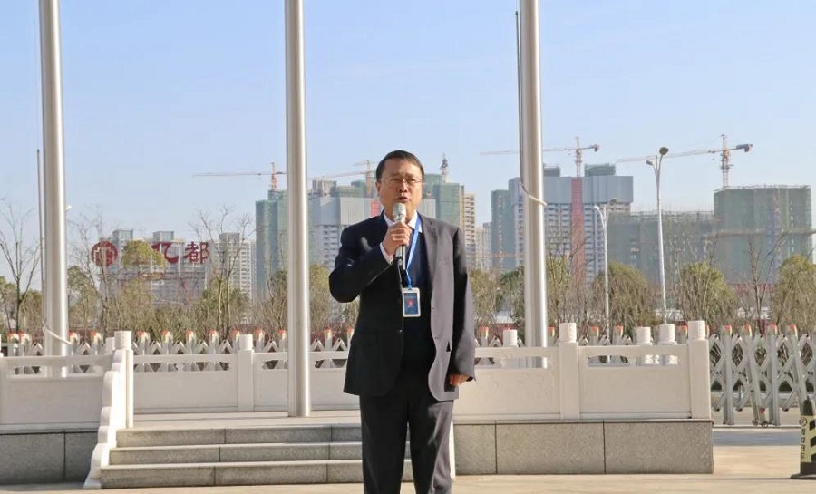 隨后,公司黨委書記胡流芳在國旗下發(fā)表新年講話。他首先代表公司向全體員工及家人拜年,致以新春的美好祝愿。他指出,新年舉行升國旗儀式,目的是為了激發(fā)大家的昂揚斗志,以飽滿的熱情、干事的激情、成事的豪情,盡快投入工作當中,推動公司高質(zhì)量發(fā)展,為公司“十四五”開好局、起好步,助推公司早日實現(xiàn)“百億化建”目標。他強調(diào),2021年是“十四五”開局之年,也是中國共產(chǎn)黨成立100周年。公司全體職工要發(fā)揮聰明才智,用務(wù)實的作風(fēng)和不折不撓的精神,團結(jié)一心,鼓足干勁,奮力拼搏,以“起步即沖刺、開局即決戰(zhàn)”的姿態(tài),只爭朝夕、全力以赴,以優(yōu)異成績獻禮中國共產(chǎn)黨百年華誕!