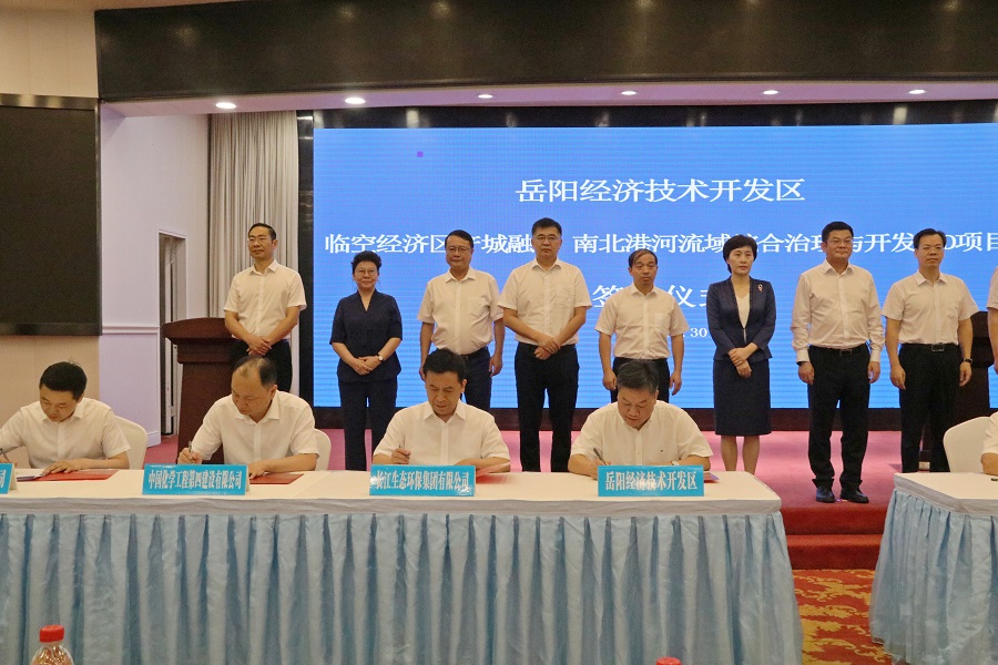 8月30日上午,公司與岳陽經(jīng)濟技術開發(fā)區(qū)管理委員會、長江生態(tài)環(huán)保集團有限公司、岳陽市公路橋梁基建總公司就南北港河流域綜合治理與開發(fā)EOD項目簽約儀式在南湖之濱舉行。岳陽市委副書記、市人民政府市長李愛武,市級領導胡建新、李永豐、黎作鳳、劉曉英、文春方、謝春生,長江生態(tài)環(huán)保集團黨委委員、副總經(jīng)理陳先明,公司黨委書記胡流芳,黨委副書記、總經(jīng)理周鴻,岳陽路橋總公司總經(jīng)理黃河等見證簽約。