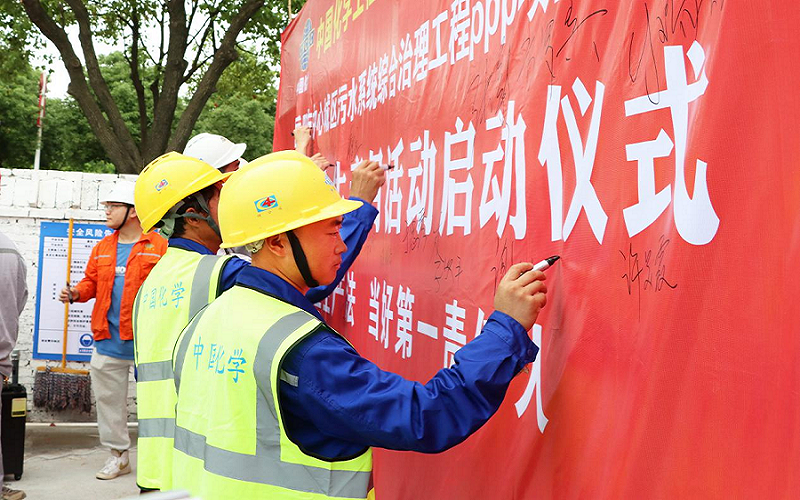 啟動儀式結(jié)束后,項目部全體人員共同在條幅上簽名并進行安全宣誓,進一步堅定安全生產(chǎn)的信心和決心。
