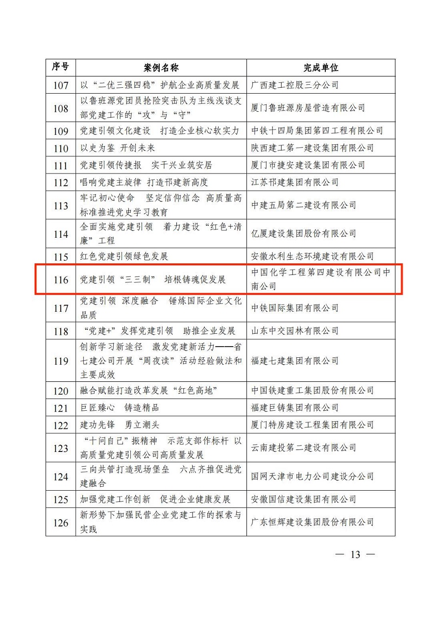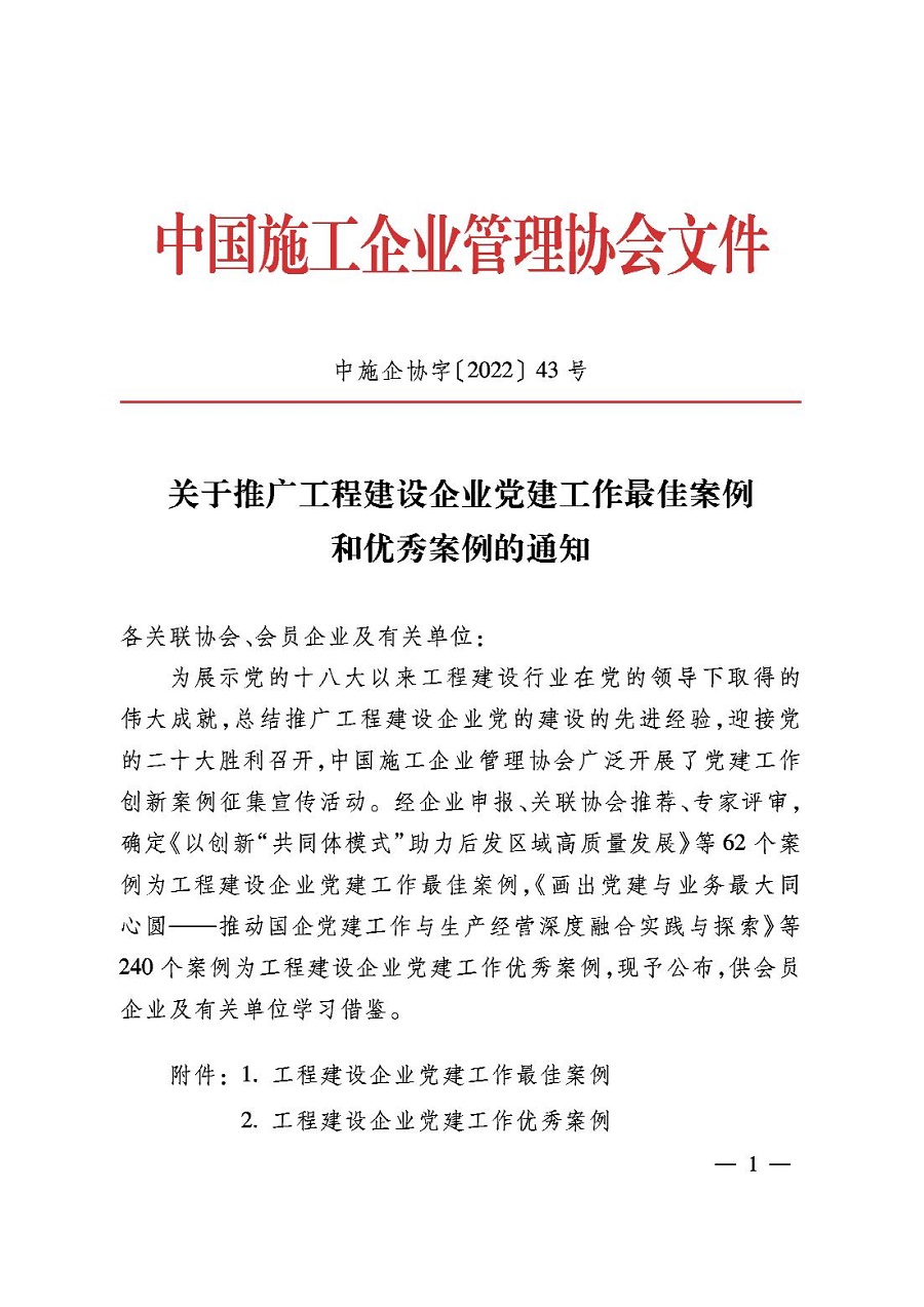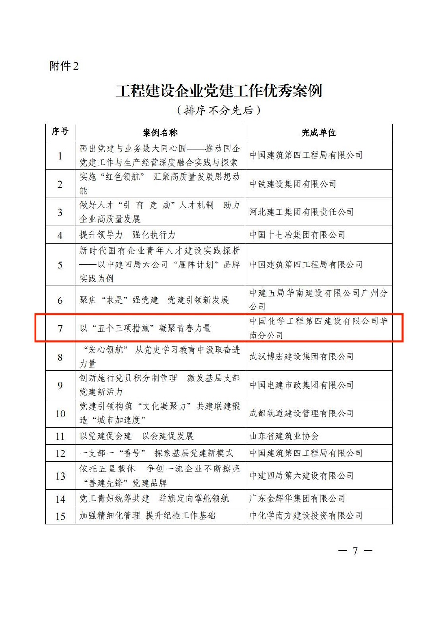 公司2項黨建工作案例獲評“工程建設企業(yè)黨建工作優(yōu)秀案例”