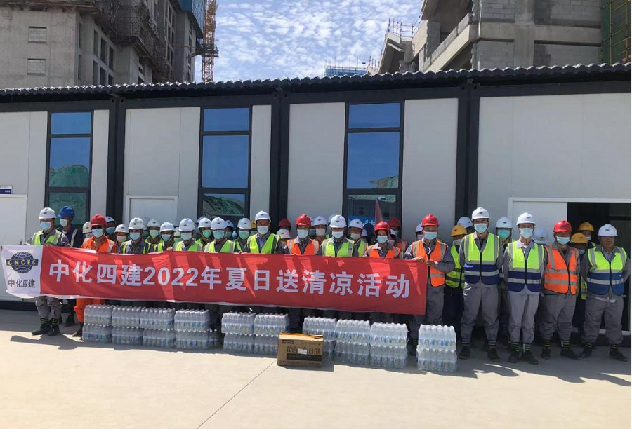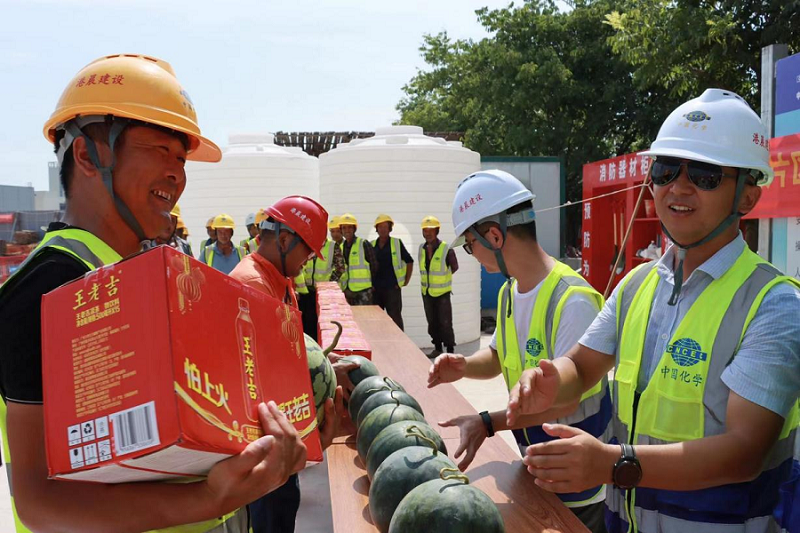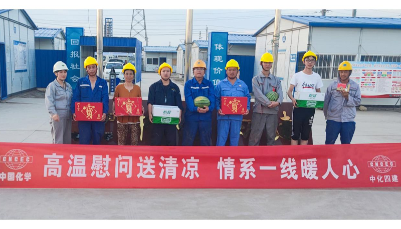 7月15日,東北公司在滄州旭陽化工項(xiàng)目組織開展“高溫慰問送清涼、情系一線暖人心”活動,為一線職工送去西瓜、涼茶、藿香正氣水等防暑降溫物品,并叮囑做好防暑降溫工作,預(yù)防各類事故發(fā)生,為項(xiàng)目竣工投產(chǎn)作貢獻(xiàn)。