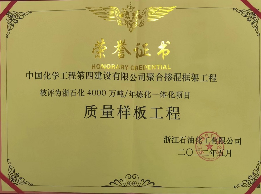 近日,浙江舟山魚山綠色石化基地管委會、浙江石油化工有限公司召開2021年度浙石化4000萬噸/年煉化一體化(二期)總結(jié)表彰大會。會上,由華東公司承建的1#6萬噸/年溶聚丁苯&10萬噸/年稀土順丁橡膠裝置聚合摻混框架工程獲評質(zhì)量樣板工程。