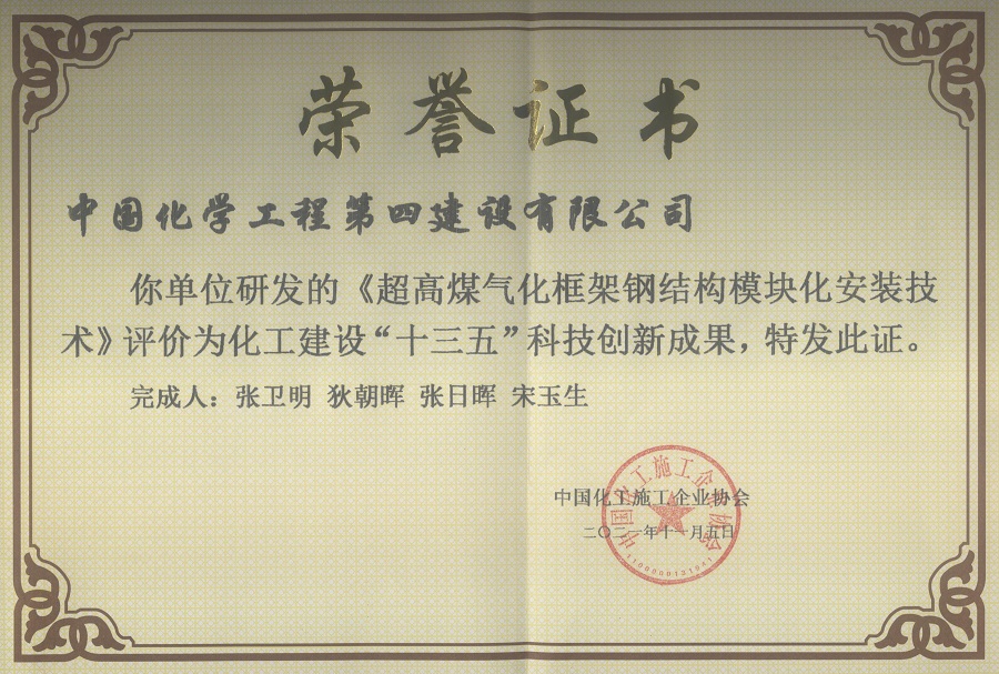 公司榮獲兩項化工建設(shè)“十三五”科技創(chuàng)新成果獎