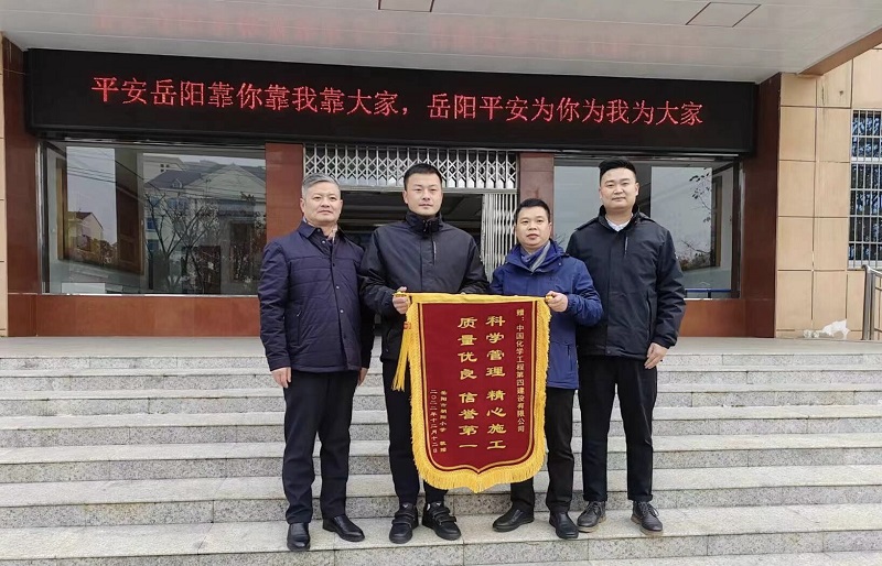 岳陽市政府機關(guān)事務(wù)管理中心、市朝陽小學到岳陽污水治理項目部贈送錦旗和致謝函