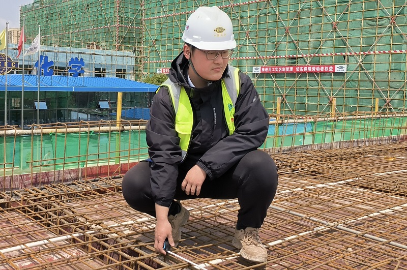 青年突擊隊(duì)不僅是“突擊隊(duì)”“生力軍”,還是項(xiàng)目“人才學(xué)?!?。青年突擊隊(duì)隊(duì)員張豪元是2022年入職的大學(xué)生,因?yàn)楣ぷ鹘?jīng)驗(yàn)不足,他便堅(jiān)守施工現(xiàn)場(chǎng),向前輩們請(qǐng)教專業(yè)問題。在最熱的9、10月份,張豪元每日扛著儀器放線測(cè)標(biāo)高,踏著朝陽(yáng)出,伴著群星歸,一身干爽的衣服走到現(xiàn)場(chǎng)就已全部濕透,在不趕工期的晚上,他就學(xué)習(xí)二建課程。張豪元從小在北方長(zhǎng)大,不太適應(yīng)南方的暴曬悶熱和辣口飯菜,整個(gè)人黑了也瘦了。