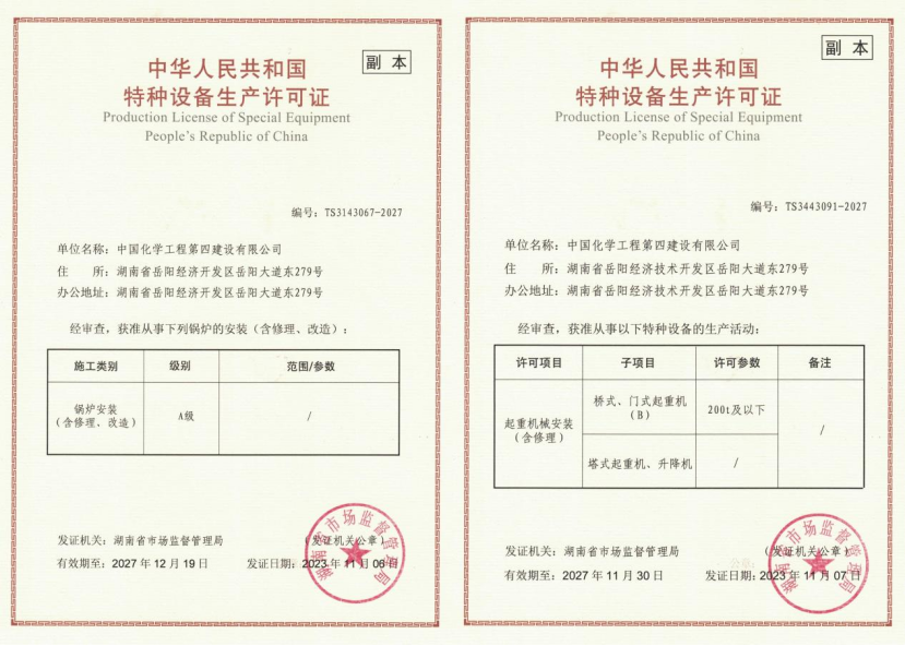 此次公司鍋爐安裝和起重機(jī)械安裝兩項(xiàng)特種設(shè)備生產(chǎn)許可證延續(xù)換證的完成,為公司積極參與市場(chǎng)競(jìng)爭(zhēng)、推進(jìn)公司高質(zhì)量發(fā)展提供了有力支撐。