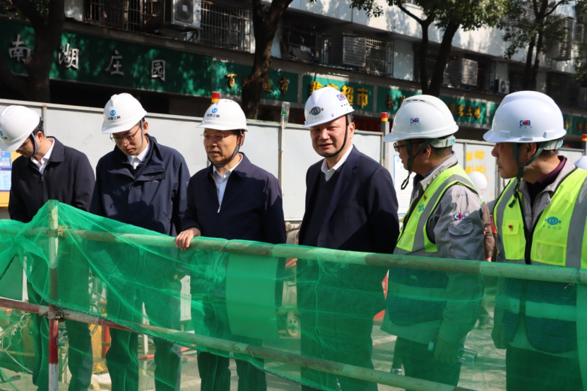 王殿常一行先后來到了項目部西瓜山濕地公園和求索西路雨污分流改造工程調(diào)研。彼時的西瓜山濕地公園湖水碧波蕩漾,岸坡綠草青青,改造后的西瓜山項目污澇同治、成效顯著,大家實地見證了從黑臭水體到“城市綠肺”的華麗轉(zhuǎn)身,開園后將成為九華山片區(qū)周邊居民打卡休閑的好去處。另一處的求索西路雨污分流改造工程采用頂管施工技術(shù),作業(yè)人員正在進行倒掛壁和頂管施工,通過新建污水管網(wǎng)打通“主動脈”。該處為南津港片區(qū)污水主干管,收集南津港周邊污水,提高COD濃度,減輕南津港污水處理廠壓力,達到提質(zhì)增效的目的。