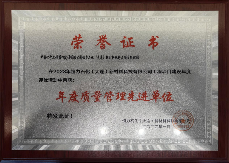 大連恒力項目部獲年度質(zhì)量管理先進單位