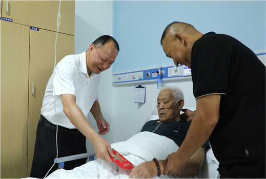 在看望慰問老同志王允平、韓興榮時,周鴻與他們親切交談,關(guān)切詢問他們的生活起居和身體情況,向他們?yōu)閲沂聵I(yè)和公司發(fā)展壯大作出的貢獻表示感謝。衷心祝愿老同志健康長壽、闔家幸福,繼續(xù)關(guān)注公司事業(yè)發(fā)展,多提寶貴意見建議,推動黨的事業(yè)薪火相傳。他同時還叮囑有關(guān)部門要格外關(guān)心老同志,切實做好各項服務工作,讓他們安享晚年、幸福生活。