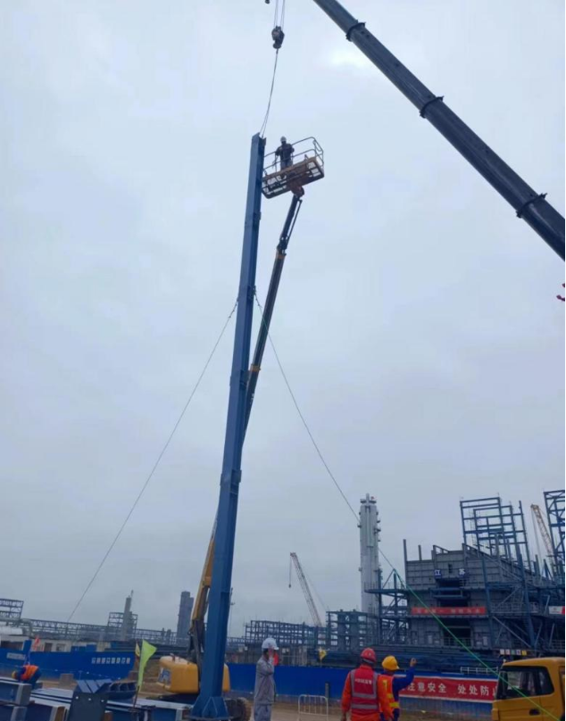 此次吊裝難度大,最大塔高度49米,穿衣戴帽后最大重量195噸。為組織好這兩臺塔器的吊裝工作,項目施工人員對設備吊裝過程的每一步“精打細算”,吊裝嚴格按照方案執(zhí)行并進行技術交底。吊裝期間,項目主要管理人員堅守現場,對設備吊裝情況實時監(jiān)督,直至塔器順利安裝就位。此次吊裝,獲得監(jiān)理業(yè)主一致認可,為后續(xù)施工打下了堅實基礎。
