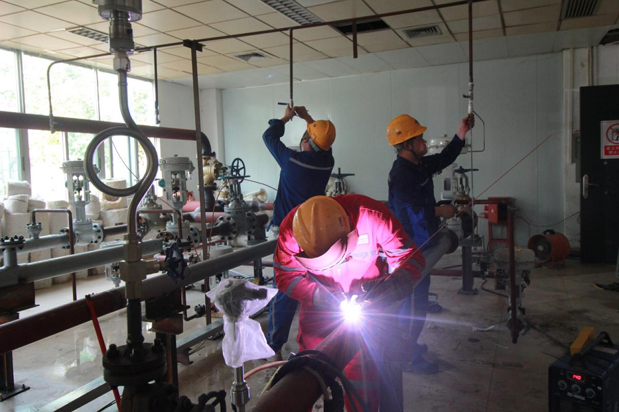 據(jù)了解,此次搶工包括11套流量計安裝,4套減溫減壓閥組裝,真空泵管道改建、上百組閥門安裝等。為確保優(yōu)質(zhì)高效完成施工任務(wù),項目克服人員不足、施工組織困難和疫情防控等不利因素,歷經(jīng)24小時連續(xù)施工,在9月21日圓滿完成改建管道的拆除、恢復(fù)、回裝、試壓、吹掃及監(jiān)檢工作。