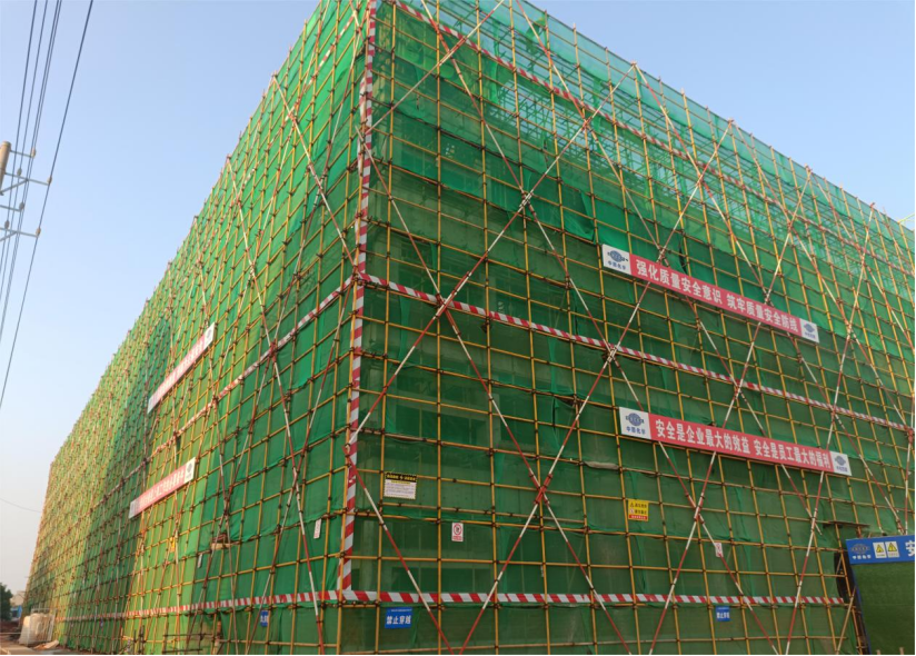 該項(xiàng)目總建筑面積1.67萬平方米,包括1棟多層廠房、1棟單層門衛(wèi)輔助用房。其中廠房標(biāo)準(zhǔn)層7.8米,地下室消防水池為深基坑,東側(cè)緊鄰高壓輸電線,主體結(jié)構(gòu)與室外交叉作業(yè),施工場(chǎng)地狹小。自5月12日項(xiàng)目開工以來,面對(duì)梅雨季節(jié)和高溫酷暑,項(xiàng)目部以“開工即決戰(zhàn)”姿態(tài),奮力組織開展突擊大干,施工人員日夜奮戰(zhàn)、頑強(qiáng)拼搏,僅用90天就順利完成項(xiàng)目封頂。