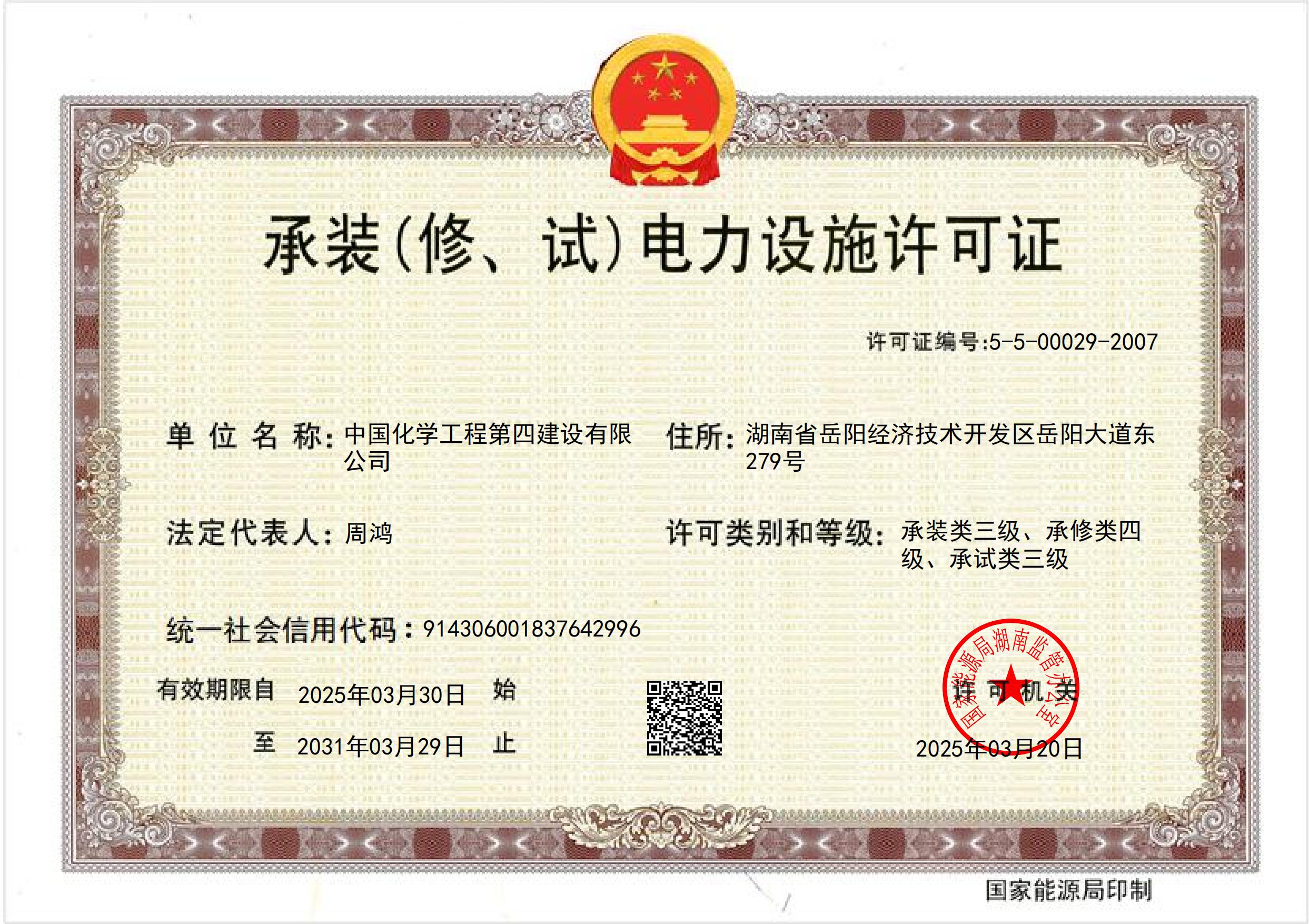 叁級(jí)承裝(修、試)電力設(shè)施許可證