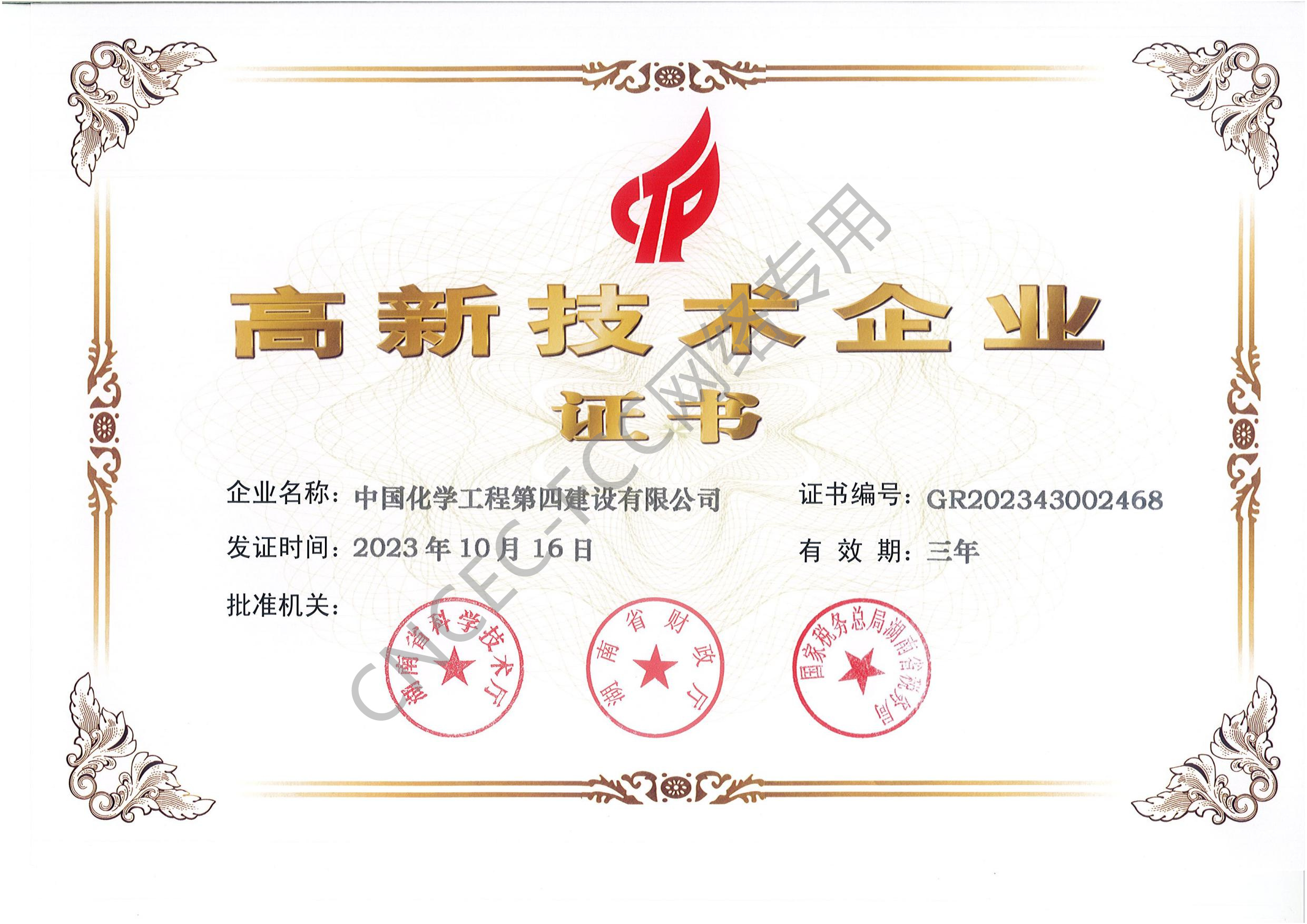高新技術(shù)企業(yè)證書